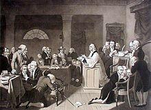 When the British occupied Philadelphia in September 1777, Duché was arrested by General William Howe and detained, underlining the seriousness of his actions. He was later released, and emerged as a Loyalist and propagandist for the British,[4] at which time he wrote a famous letter to General George Washington, camped at Valley Forge, Pennsylvania, in which he begged him to lay down arms and negotiate for peace with the British.[5] Suddenly, Duché went from hero of the Revolutionary cause to outcast in the new United States. He was convicted of high treason to the State of Pennsylvania, and his estate was confiscated. In consequence, Duché fled to England, where he was appointed chaplain to the Lambeth orphan asylum, and soon made a reputation as an eloquent preacher. He was not able to return to America until 1792, after he had suffered a stroke.