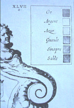 Franquart was also famous for his outstanding illustrations that show the 1621 funeral procession of Albrecht Habsburg (table no. 61).[1] The work was published in Brussels but being seen more as one of the eminent works of the golden age of the Antwerp copperplate engraving. The majority of the text was written by the Belgian writer and historian Erycius Puteanus (Venlo, 1574 – Leuven 1646), published earlier in a book titled Phoenix Principum... (Louvain, 1622). The engraving contains a hatching table of heraldic tinctures which is the earliest hatching system in heraldry after Zangrius. According to some authors it also gave inspiration for the later hatching system of de la Colombière.