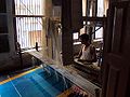 Weaving on a jacquard loom with a flying shuttle at the Textile Department of the Strzemiński Academy of Fine Arts in Łódź, Poland.