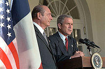 Chirac emerged as a leading voice against US president George W. Bush's administration's conduct towards Iraq. Despite intense U.S. pressure, Chirac threatened to veto, at that given point, a resolution in the U.N. Security Council that would authorize the use of military force to rid Iraq of alleged weapons of mass destruction, and rallied other governments to his position. Russia, another permanent UN Security Council member, said it, too, would use its veto against such a resolution,[3][4] (cf. Governments' pre-war positions on invasion of Iraq and Protests against the 2003 Iraq war). "Iraq today does not represent an immediate threat that justifies an immediate war", Chirac said on March 18, 2003. Chirac was then the target of various American and British commentators supporting the decisions of president Bush and prime minister Tony Blair. See also anti-French sentiment in the United States. Suspected French involvement in "under the table" deals with Saddam Hussein have led many supporters of the war to question Chirac's motives in opposing the invasion of Iraq.