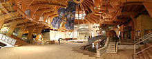 The intentionally inclined designed tower leads its visitor through an exhibit representing 6,000 years of human history. The tower has six floors, five of which comprise the history exhibit. The individual floors are accessible by means of an internal stairway, as well as a spiral wooden stair on the tower's exterior. The 8,000 square meter exhibition surface offers approximately 80 interactive experimental setups for the visitor to manipulate. In addition, the tower offers several hundred informational exhibits and diagrams. The exhibit is installed in chronological order. The Millennium Tower is in the Elbauenpark Magdeburg. Admission to the tower is included in the entrance price of the park.