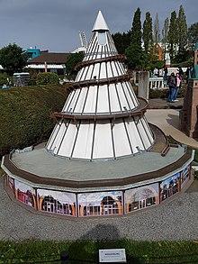 Jahrtausendturm (German: millennium tower) is, at 60 metres (200 ft), one of the highest wooden towers in the world. It was established on the occasion of the Bundesgartenschau 1999 in the Magdeburger Elbauenpark in Magdeburg, Germany. The tower houses an exhibition on the development of sciences, which is supported by many descriptive experiments with which the visitor can interact. One notable example is a powerful telescope through which visitors can observe the distant clock-face on the Magdeburger cathedral.