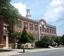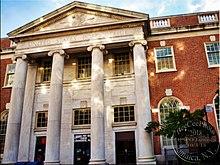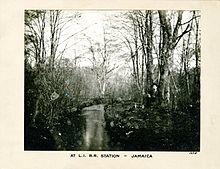 By 1776, Jamaica had become a trading post for farmers and their produce. For more than a century, their horse-drawn carts plodded along Jamaica Avenue, then called King's Highway. The Jamaica Post Office opened September 25, 1794, and was the only post office in the present-day Boroughs of Queens or Brooklyn before 1803.[15] Union Hall Academy for boys, and Union Hall Seminary for girls, were chartered in 1787.[16] The Academy eventually attracted students from all over the United States and the West Indies.[17] The public school system was started in 1813 with funds of $125. Jamaica Village, the first village on Long Island, was incorporated in 1814 with its boundaries being from the present-day Van Wyck Expressway (on the west) and Jamaica Avenue (on the north, later Hillside Avenue) to Farmers Boulevard (on the east) and Linden Boulevard (on the south) in what is now St. Albans.[18] By 1834, the Brooklyn and Jamaica Railroad company had completed a line to Jamaica.