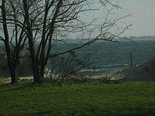 The project began in 1911,[8] despite doubts about the feasibility of the project. Some engineers believed that shifting sand dunes and the tides in Jamaica Bay might make it impossible to construct the seaport district.[9][6] The next year, developers began dredging ports within Jamaica Bay in order to make it navigable for the large vessels that were supposed to use the bay.[10][11] Significant progress on the dredging had been completed by 1918, and the city allowed the construction of several piers.[8] However, only one pier was built near Barren Island. The pier, which was built in order to receive landfill for the other proposed piers, stretched 1 mile (1.6 km) northeast and was 700 feet (210 m) wide.[12] A total of six such piers were planned for this area.[13] In June 1918, a 447-foot-long (136 m) municipally owned pier was opened at Mill Basin. At the time, there were proposals to fill in 8,000 acres (3,200 ha) between Mill and Barren Islands so 14 more piers could be built.[14] With the United States' entry into World War I, the project was abandoned.[15][6]