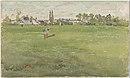 Whistler was sent to Christ Church Hall School with his mother's hopes that he would become a minister.[19] Whistler was seldom without his sketchbook and was popular with his classmates for his caricatures.[20] However, it became clear that a career in religion did not suit him, so he applied to the United States Military Academy at West Point, where his father had taught drawing and other relatives had attended. He was admitted to the highly selective institution in July 1851 on the strength of his family name, despite his extreme nearsightedness and poor health history.[21] However, during his three years there, his grades were barely satisfactory, and he was a sorry sight at drill and dress, known as "Curly" for his hair length which exceeded regulations. Whistler bucked authority, spouted sarcastic comments, and racked up demerits. Colonel Robert E Lee was the West Point Superintendent and, after considerable indulgence toward Whistler, he had no choice but to dismiss the young cadet. Whistler's major accomplishment at West Point was learning drawing and map making from American artist Robert W. Weir.[19]