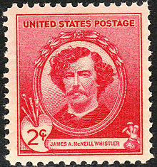 James Abbott McNeill Whistler RBA (/ˈwɪslər/; July 11, 1834 – July 17, 1903) was an American artist active during the American Gilded Age and based primarily in the United Kingdom. He was averse to sentimentality and moral allusion in painting, and a leading proponent of the credo "art for art's sake". His signature for his paintings took the shape of a stylized butterfly possessing a long stinger for a tail.[1] The symbol combined both aspects of his personality: his art is marked by a subtle delicacy, while his public persona was combative. He found a parallel between painting and music, and entitled many of his paintings "arrangements", "harmonies", and "nocturnes", emphasizing the primacy of tonal harmony.[2] His most famous painting, Arrangement in Grey and Black No. 1 (1871), commonly known as Whistler's Mother, is a revered and often parodied portrait of motherhood. Whistler influenced the art world and the broader culture of his time with his theories and his friendships with other leading artists and writers.[3]