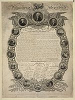 Longacre became apprenticed to George Murray, principal in the engraving firm Murray, Draper, Fairman & Co. at 47 Sansom Street in Philadelphia.[3] This business derived from the firm established by the Philadelphia Mint's first chief engraver, Robert Scot. Longacre remained at the Murray firm until 1819; his major work there was portraits of George Washington, Thomas Jefferson, and John Hancock which were placed on a facsimile of the Declaration of Independence by publisher John Binns; the work cost Binns a total of $9,000 (equal to $150,320 today).[2] Also employed at the Murray firm from 1816 was the man who would be Longacre's predecessor as chief engraver, Christian Gobrecht.[4] Longacre's work at the company gave him a good reputation as an engraver skilled in rendering other artists' paintings as a printed engraving, and in 1819, he set up his own business at 230 Pine Street in Philadelphia.[2]