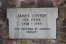 - ^ University of Edinburgh. "Millennial Plaques: James Hutton". Hutton's Millennial Plaque, which reads, "In honour of James Hutton 1726–1797 Geologist, chemist, naturalist, father of modern geology, alumnus of the University," is located at the main entrance of the Grant Institute). Archived from the original on 1 November 2007.