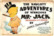 In 1896, he moved to New York by invitation to produce comic strips for the Journal-American, another Hearst paper. He drew a few more Little Bears for the paper, followed by some strips with a Noah's Ark setting, referred to as Mount Ararat. He hit upon a durable theme with a series of strips featuring anthropomorphic tigers, which soon took the title Mr. Jack. As the character developed, Mr. Jack was an inveterate philanderer, to his wife's distress. Some of his misdeeds were considered unsuitable for juvenile readers. The strip had its last appearance in the Sunday comics color supplement in 1904. In a later revival (1912–19), it appeared in the editorial pages. Meanwhile, Swinnerton continued to fill his Sunday space with a new character, a scatterbrained boy named Jimmy. He drew Jimmy in various formats, eventually under the title Little Jimmy, until 1958 (with a hiatus from 1941 to 1945, during which he wrote and drew the King Features Syndicate Western strip Rocky Mason, Government Marshal, which premiered on Sunday, August 24, 1941).[4] A peculiarity of Swinnerton's comic strips is that the dialogue appears in quotes within the speech balloons.