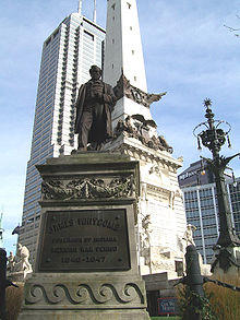 In 1848, before his second term ended, Whitcomb was elected by the legislature to become a member of the United States Senate. He resigned as governor and served in the Senate from 1849 until his death in 1852, and was a staunch opponent of tariffs. While in Washington, D.C., he served several years as the Vice-President of the American Bible Society, remaining in that position until his death.[15] He became afflicted by kidney stones and sought medical treatment in New York City for kidney disease. He died from the illness in New York City on October 4, 1852. His remains were returned to Indianapolis, to be buried in Greenlawn Cemetery, where the state erected a monument over his grave.[16] In 1898 his daughter had his body exhumed and moved to Crown Hill Cemetery next to the grave of Oliver P. Morton. In his will, Whitcomb left his large private library and part of his estate to the Methodist Asbury College (now known as DePauw University). He also left a large donation for the American Bible Association.[15] His library is thought to be haunted by some of its patrons.[17][18] There is a statue of Whitcomb on Monument Circle in Indianapolis.