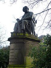 Simpson was elected President of the Royal College of Physicians of Edinburgh in 1850[25] and an international member of the American Philosophical Society in 1863.[26] He was created a Baronet of Strathavon in the County of Linlithgow, and of the City of Edinburgh, in 1866.[27] He died at his home in Edinburgh in May 1870 at the age of 58. A burial spot in Westminster Abbey was offered to his family, but they declined and instead buried him closer to home in Warriston Cemetery, Edinburgh.[28] However, a memorial bust can be found in a niche at Westminster Abbey in London.[29] On the day of Simpson's funeral, a Scottish holiday was declared, including the banks and stock markets, with over 100,000 citizens lining the funeral cortege on its way to the cemetery, while over 1,700 colleagues and business leaders took part in the procession itself.