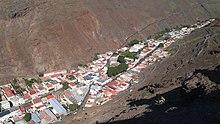 The town is built on igneous rock in the James Valley, sandwiched between steep cliffs. It is therefore rather long and thin. The walls of the valley are rough and steep, and rockfalls have been a problem, although now minimised by netting.[7] A small stream, the Run, runs through the valley.[8] The town is commonly divided into lower and upper parts, depending on the distance up James Valley. Being the island's main port (and with the Saint Helena Airport only receiving its first scheduled flight in October 2017) the town is still currently the main entrance to the island to visitors.[7] Despite not being connected to Jamestown proper by road, Rupert's Valley, the next valley north, is also part of the town. It houses much of the island's infrastructure, such as its power station and associated fuel storage, and a one-ship wharf was completed in June 2016.[9]