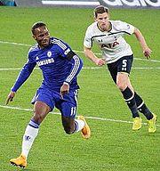Throughout the 2011–12 season, Vertonghen was linked with English club Tottenham Hotspur and publicly expressed his desire to make the move to White Hart Lane ahead of numerous other teams. A key factor in this was his desire to play as a centre-back, with Arsenal wanting to use him as a defensive midfielder. On 8 July 2012, Tottenham agreed a fee and terms for Vertonghen subject to a medical. On 12 July, Tottenham announced that they had officially completed the signing of Vertonghen, for an amount around 12 million Euros, after he successfully completed his medical.[20][21] Vertonghen took part in his first game as a Tottenham player in a 3–2 friendly win against Brentford on 14 July, then later scored his first goal for the club on 26 September in a 3–0 win against Carlisle United in the third round of the Football League Cup.[22]
