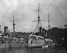 Otowa (音羽) was a protected cruiser of the Imperial Japanese Navy, designed and built by the Yokosuka Naval Arsenal in Japan. The name Otowa comes from a mountain in Kyoto, located behind Kiyomizu-dera. The waters from a waterfall at this temple were traditionally held to be a cure for all illnesses.