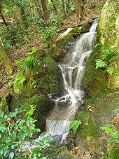 A cascade or waterfall is an important element in Japanese gardens, a miniature version of the waterfalls of Japanese mountain streams. The Sakuteiki describes seven kinds of cascades. It notes that if possible a cascade should face toward the moon and should be designed to capture the moon's reflection in the water.[31] It is also mentioned in Sakuteiki that cascades benefit from being located in such a manner that they are half-hidden in shadows.