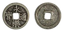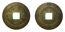 - ^ "4 mon Kan'ei and Bunkyuu coins". Luke Roberts at the Department of History - University of California at Santa Barbara. 24 October 2003. Retrieved 16 June 2017.