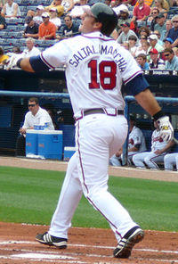 On his 22nd birthday, he was called up to Atlanta to replace Brayan Peña on the roster and to fill in for Brian McCann, who re-injured his finger on May 1, 2007.[5] Saltalamacchia's call-up made him the new record-holder of the longest surname in Major League Baseball history, at 14 letters,[6] breaking the record set by William Van Landingham (or tying it, depending on whether one counts the space in the latter's surname).