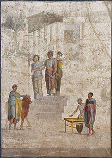 Many years later, Pelias was holding games in honor of Poseidon when the grown Jason arrived in Iolcus, having lost one of his sandals in the river Anauros ('wintry Anauros') while helping an old woman (actually the Goddess Hera in disguise) to cross.[1] She blessed him for she knew, as goddesses do, what Pelias had planned. When Jason entered Iolcus (present-day city of Volos), he was announced as a man wearing only one sandal. Jason, aware that he was the rightful king, so informed Pelias. Pelias replied, "To take my throne, which you shall, you must go on a quest to find the Golden Fleece." Jason readily accepted this condition.