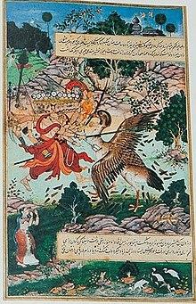In the Hindu epic Ramayana, Jatayu (Sanskrit: जटायुः Jaṭāyuḥ) is a divine bird and the younger son of Aruṇa and his wife Shyeni.[1] His brother, Sampati, is a demi-god who has the form of a vulture and was an old friend of Dasharatha (Rama's father).
