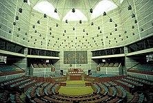 Jatiya Sangsad Bhaban or National Parliament House, (Bengali: জাতীয় সংসদ ভবন Jatiyô Sôngsôd Bhôbôn) is the house of the Parliament of Bangladesh, located at Sher-e-Bangla Nagar in the Bangladeshi capital of Dhaka. Designed while the country was still part of Pakistan by architect Louis Kahn, the complex is one of the largest legislative complexes in the world, comprising 200 acres (800,000 m2).[1]