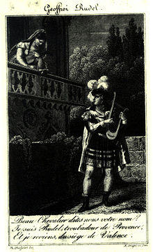 Jaufre Rudel (Jaufré in modern Occitan) was the Prince of Blaye (Princes de Blaia) and a troubadour of the early–mid 12th century, who probably died during the Second Crusade, in or after 1147. He is noted for developing the theme of "love from afar" (amor de lonh or amour de loin) in his songs.