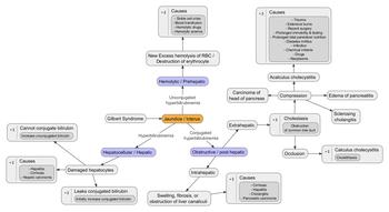 | Pre-hepatic jaundice | Hepatic jaundice | Post-hepatic jaundice | |
