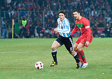 Zanetti remained a regular under new coach Diego Maradona, although defensive midfielder Javier Mascherano took over as captain at Maradona's request.[42] Despite winning the Champions League at club level, Zanetti and Inter teammate Esteban Cambiasso were not included in the Argentina squad for the 2010 World Cup. This move was heavily criticised by football pundits from both South America and Europe. Instead 30-year-old Ariel Garcé, who had been called up just twice in the previous five years,[43] received a shocking selection, but ultimately did not play a single minute in any World Cup match. Zanetti's place in the starting line up was taken by Jonás Gutiérrez, who had spent the previous season playing on the wing for Newcastle United in England's second-tier Football League Championship.[44]