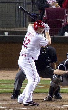 In 2006, he was promoted to the Reds' Low-A affiliate Dayton Dragons, where he excelled batting .291/.355/.516 (6th in the Midwest League) with 16 home runs (tied for 4th), 81 RBIs (4th; leading all Reds minor leaguers), and 42 doubles (leading the league), in 444 at bats,[13][6] placing him on many top prospect lists. He was a Mid-Season All Star, an All Star Game Top Star, a Post-Season All Star, a Baseball America Low Class A All Star, and was named a Baseball America Minor League All Star.[14] Baseball America named him the top prospect in the Midwest League.[6]