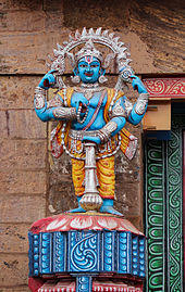 In Hindu religion, Jaya and Vijaya are the two gatekeepers (Dwarapalaka) of the abode of Vishnu, known as Vaikuntha (meaning place of eternal bliss).[1][2] Due to a curse, they were forced to undergo multiple births as mortals who would be subsequently killed by various avatars of Vishnu. They were incarnated as Hiranyakashipu and Hiranyaksha in Satya Yuga, Ravana and Kumbhakarna in Treta Yuga, and finally Shishupala and Dantavakra in Dvapara Yuga.