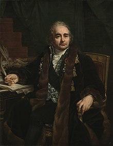 Jean-Antoine Chaptal, comte de Chanteloup (5 June 1756 – 30 July 1832) was a distinguished French chemist, physician, agronomist, industrialist, statesman, educator and philanthropist. His multifaceted career unfolded during one of the most brilliant periods in French science. In chemistry it was the time of Antoine Lavoisier, Claude-Louis Berthollet, Louis Guyton de Morveau, Antoine-François Fourcroy and Joseph Gay-Lussac. Chaptal made his way into this elite company in Paris beginning in the 1780s, and established his credentials as a serious scientist most definitely with the publication of his first major scientific treatise, the Ėléments de chimie (3 vols, Montpellier, 1790). His treatise brought the term "nitrogen" into the revolutionary new chemical nomenclature developed by Lavoisier. By 1795, at the newly established École Polytechnique in Paris, Chaptal shared the teaching of courses in pure and applied chemistry with Claude-Louis Berthollet, the doyen of the science. In 1798, Chaptal was elected a member of the prestigious Chemistry Section of the Institut de France. He became president of the section in 1802 soon after Napoleon appointed him Minister of Interior (6 November 1800). Chaptal was a key figure in the early industrialization in France under Napoleon and during the Bourbon Restoration. He was a founder and first president in 1801 of the important Society for the Encouragement of National Industry and a key organizer of industrial expositions held in Paris in 1801 and subsequent years. He compiled a valuable study, De l'industrie française (1819), surveying the condition and needs of French industry in the early 1800s. Chaptal was especially strong in applied science. Beginning in the early 1780s, he published a continuous stream of practical essays on such things as acids and salts, alum, sulfur, pottery and cheese making, sugar beets, fertilizers, bleaching, degreasing, painting and dyeing. As a chemicals industrialist, he was a major producer of hydrochloric, nitric and sulfuric acids, and was much sought after as a technical consultant for the manufacture of gunpowder. His reputation as a master of applied science, dedicated to using the discoveries of chemistry for the benefit of industry and agriculture, was furthered with the publication of his L'Art de faire, de gouverner et de perfectionner les vins (1801) and La Chimie appliquée aux arts (1806), works that drew on the theoretical chemistry of Lavoisier to revolutionize the art of wine-making in France. His new procedure of adding sugar to increase the final alcohol content of wines came to be called "chaptalization." In 1802, Chaptal purchased the Château de Chanteloup and its extensive grounds in Touraine, near Amboise. He raised merino sheep and experimented there in his later years on a model farm for the cultivation of sugar beets. He wrote his classic study of the application of scientific principles to the cultivation of land, the Chimie appliquée à l'agriculture (1823), and composed his important political memoir, Mes souvenirs sur Napoléon(1893). Napoleon named Chaptal Count of the Empire (1808) and Count of Chanteloup (1810). In 1819 he was named by Louis XVIII to the Restoration's Chamber of Peers.[1]