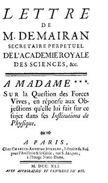 - Dissertation sur l'estimation et la mesure des forces motrices des corps (1728) (Essay on the estimation of the measures of forces on the body)