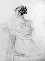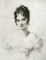 Despite old age, ill-health, partial blindness, and reduced circumstances, Récamier never lost her attractiveness, though at least one man who met her, artist Guillaume Gavarni, opined that she "stank of the lower middle class."[12] And although she numbered among her admirers Mathieu de Montmorency, Lucien Bonaparte, Prince Augustus of Prussia (whose proposal was accepted but the marriage never occurred), Pierre-Simon Ballanche, Jean-Jacques Ampère, and Benjamin Constant, none of them obtained over her so great an influence as did Chateaubriand, though she suffered much from his imperious temper. If she had any genuine affection, it seems to have been for the baron de Barante, whom she met at Coppet.[1][13]