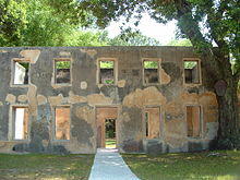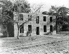 Horton continued to develop his property on Jekyll. In 1742 his house was destroyed during Spanish attacks, but he had it rebuilt. He developed the cultivation of new experimental crops on his plantation, including barley and indigo. Horton had his house and outbuildings reconstructed after the attacks using the indigenous material, tabby. A mixture of lime, crushed oyster shells, and water, this strong building material has withstood the test of time throughout the Sea Islands. The external structure of William Horton’s two-story house, built from tabby, is one of two remaining two-story colonial-era structures in the state of Georgia.[13] William Horton died in 1748–1749. His property on Jekyll passed through many hands until, just before the year 1800, Christophe du Bignon acquired all of the property of the island.
