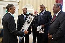 On July 11, 2013, in the Oval Office of the White House, Harkness and former Loyola teammates John Egan, Les Hunter and Ron Miller met with President Barack Obama to commemorate the 50th anniversary of the school's 1963 national championship.[11] To date it remains the only NCAA Division I basketball championship won by a university from the state of Illinois.[12] In September 2013, Harkness and the entire 1963 Loyola Ramblers NCAA Championship basketball team was inducted into the Chicagoland Sports Hall of Fame.[13] The 1963 Loyola Ramblers were inducted in the College Basketball Hall of Fame in November 2013.[14][15]