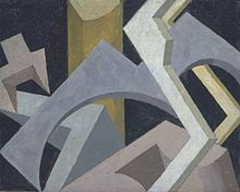 Dismorr met Wyndham Lewis in 1913 and by 1914 had become a member of the Rebel Art Centre.[2] She maintained a studio in the Kings Road, Chelsea, London, as well as taking frequent trips to France. Dismorr was a signatory to the Vorticist manifesto published in the first issue of their literary magazine, Blast in 1914,[7] and also contributed illustrations and a written piece, Monologue, to the second issue in 1915.[2] She shared the group's depiction of the dynamics of the machine and their desire to challenge the public's conservative views on art but little of her work from this period survives.[4][7] The four works she contributed to the Vorticist exhibition in 1915 are now thought to be lost, as is the original of The Engine which was reproduced in an edition of Blast.[3] Both the Victoria and Albert Museum and the Tate hold one example each of Dismorr's work from this period and the collector John Quinn displayed several examples in New York in December 1916.[3][8] Dismorr exhibited with the Vorticists again in New York in January 1917 at the Penguin Club.[9]