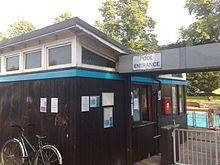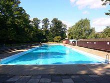 Jesus Green Swimming Pool is a lido situated on Jesus Green in Cambridge, England. Opened in 1923,[1] it is one of the few remaining examples of the lidos built across the country in the 1920s — open air pools with space for activities other than swimming. Unusually, the pool is significantly longer than it is wide — this was a design idea to mimic swimming in the nearby river. It opens for public bathing from May to September every year.[2]