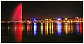 The Jet d'Eau (French pronunciation: [ʒɛ do], Water-Jet) is a large fountain in Geneva, Switzerland and is one of the city's most famous landmarks, being featured on the city's official tourism web site and on the official logo for Geneva's hosting of group stage matches in the 2008 UEFA Euro.[1] Situated where Lake Geneva exits as the Rhône, it is visible throughout the city and from the air, even when flying over Geneva at an altitude of 10 kilometres (33,000 ft).