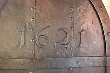In 1621, a subcommittee of the House of Lords concluded that the Lords' record keeping should be improved, and the tower was renovated to improve its storage facilities.[27] The first floor of the tower, used to store the documents, was renovated with brick vaulting, providing better fire protection than the original wooden ceiling, by Thomas Hicks at a cost of £6.[28] The chamber was further protected by a new iron door.[29]