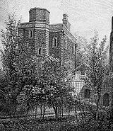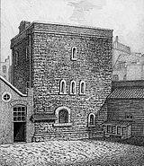 By the 19th century, the tower was obscured by the surrounding buildings, and was accessed through the brick-built office in front of it, according to the antiquarian and engraver John Smith.[39] The tower began to become too small for storing all the House of Lords' records, and from 1827 onwards only the acts, journals and minute-books were kept in the tower.[40]