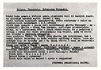- ^ (in Polish) 23 IV 1943, Warsaw: Odezwa Żydowskiej Organizacji Bojowej z pozdrowieniami z walczącego getta i wezwaniem do walki o wspólną wolność Żydów i Polaków. Archived 2008-10-20 at the Wayback Machine Polska.pl Skarby Dziedzictwa Narodowego; Nask, 2008