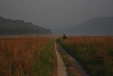 Two villages situated on the southern boundary were shifted to the Firozpur–Manpur area situated on Ramnagar–Kashipur highway during 1990–93; the vacated areas were designated as buffer zones.[27] The families in these villages were mostly dependent on forest products.[27] With the passage of time, these areas began to show signs of ecological recovery.[27] Vines, herbs, grasses and small trees began to appear, followed by herbaceous flora, eventually leading to natural forest type.[27] It was observed that grass began to grow on the vacated agricultural fields and the adjoining forest areas started recuperating.[27] By 1999–2002 several plant species emerged in these buffer zones.[27] The newly arisen lush green fields attracted grass eating animals, mainly deer and elephants, who slowly migrated towards these areas and even preferred to stay there throughout the monsoon.[27]