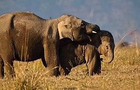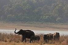 In the summer, Indian elephants can be seen in herds of several hundred.[6] The Indian python found in the reserve is a dangerous species, capable of killing a chital deer.[6] Local crocodiles and gharials were saved from extinction by captive breeding programs that subsequently released crocodiles into the Ramganga river.[6]