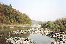 The reserve, located partly along a valley between the Lesser Himalaya in the north and the Shivaliks in the south, has a sub-Himalayan belt structure.[3] The upper tertiary rocks are exposed towards the base of the Shiwalik range and hard sandstone units form broad ridges.[3] Characteristic longitudinal valleys, geographically termed Doons, or Duns can be seen formed along the narrow tectonic zones between lineaments.[3]
