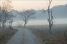 The weather in the park is temperate compared to most other protected areas of India.[14] The temperature may vary from 5 °C (41 °F) to 30 °C (86 °F) during the winter and some mornings are foggy.[14] Summer temperatures normally do not rise above 40 °C (104 °F).[14] Rainfall ranges from light during the winter to heavy during the monsoonal summer.[2]