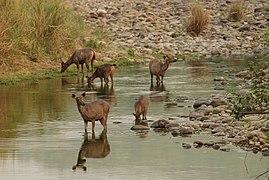 Leopards are found in hilly areas but may also venture into the low land jungles.[6] Small cats in the park include the jungle cat, fishing cat and leopard cat.[6] Other mammals include barking deer, sambar deer, hog deer and chital, sloth and Himalayan black bears, Indian grey mongoose, otters, yellow-throated martens, Himalayan goral, Indian pangolins, and langur and rhesus macaques.[16] Owls and nightjars can be heard during the night.[6]