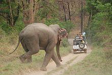 As early as 1991, the Corbett National Park played host to 3237 tourist vehicles carrying 45,215 visitors during the main tourist seasons between 15 November and 15 June.[4] This heavy influx of tourists has led to visible stress signs on the natural ecosystem.[4] Excessive trampling of soil due to tourist pressure has led to reduction in plant species and has also resulted in reduced soil moisture.[4] The tourists have increasingly used fuel wood for cooking.[4] This is a cause of concern as this fuel wood is obtained from the nearby forests, resulting in greater pressure on the forest ecosystem of the park.[4] Additionally, tourists have also caused problems by making noise, littering and causing disturbances in general.[18]