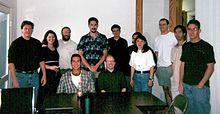 Though Bomis had at the time struggled to make money, it provided Wales with the funding to pursue his greater passion, an online encyclopedia.[18] While moderating an online discussion group devoted to the philosophy of Objectivism in the early 1990s, Wales had encountered Larry Sanger, a skeptic of the philosophy.[7] The two had engaged in detailed debate on the subject on Wales' list and then on Sanger's, eventually meeting offline to continue the debate and becoming friends.[7] Years later, after deciding to pursue his encyclopedia project and seeking a credentialed academic to lead it,[28] Wales hired Sanger—who at that time was a doctoral student in philosophy at Ohio State University—to be its editor-in-chief, and in March 2000, Nupedia ("the free encyclopedia"), a peer-reviewed, open-content encyclopedia, was launched.[18][20] The intent behind Nupedia was to have expert-written entries on a variety of topics, and to sell advertising alongside the entries in order to make profit.[7] The project was characterized by an extensive peer-review process designed to make its articles of a quality comparable to that of professional encyclopedias.[33]