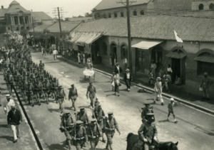 The Jinan incident (Japanese: 済南事件; formerly romanised Tsinan) or 3 May Tragedy (simplified Chinese: 五三惨案; traditional Chinese: 五三慘案; pinyin: Wŭsān Cǎn'àn) began as a 3 May 1928 dispute between Chiang Kai-shek's National Revolutionary Army (NRA) and Japanese soldiers and civilians in Jinan, the capital of Shandong province in China, which then escalated into an armed conflict between the NRA and the Imperial Japanese Army. Japanese soldiers had been deployed to Shandong province to protect Japanese commercial interests in the province, which were threatened by the advance of Chiang's Northern Expedition to reunite China under a Kuomintang government.[2] When the NRA approached Jinan, the Beiyang government-aligned army of Sun Chuanfang withdrew from the area, allowing for the peaceful capture of the city by the NRA.[3] NRA forces initially managed to coexist with Japanese troops stationed around the Japanese consulate and businesses, and Chiang Kai-shek arrived to negotiate their withdrawal on 2 May. This peace was broken the following morning, however, when a dispute between the Chinese and Japanese resulted in the deaths of 13–16 Japanese civilians. The resulting conflict resulted in thousands of casualties on the NRA side, which fled the area to continue northwards toward Beijing, and left the city under Japanese occupation until March 1929.[2]