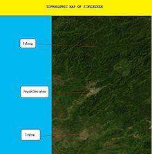 Jingdezhen is situated in the north-east of Jiangxi and borders on Anhui; the city center area is located in the north-east of the Poyang Lake Plain. Its area is 5,256 km2 (2,029 sq mi).[7] The highest point is 1,618 m (5,308 ft), with plains on the southern part having an average altitude of 200 m (660 ft).