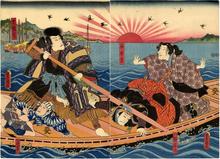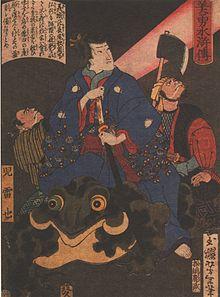 Jiraiya (自来也 or 児雷也, literally "Young Thunder"[1]), originally known as Ogata Shuma Hiroyuki, is the toad-riding protagonist of the Japanese folk tale Jiraiya Gōketsu Monogatari (児雷也豪傑物語, "The Tale of the Gallant Jiraiya"). The tale was adapted into a 19th-century serial novel, a kabuki drama, several films, video games, and a manga and has also influenced various other works.